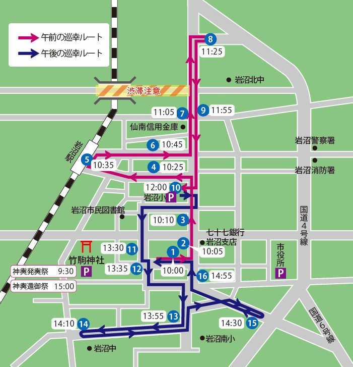 ○巡幸図の各番号の時刻についてはおよその通過時刻となります。