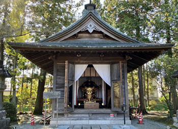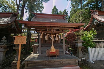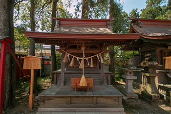 創建年代は不明ですが、江戸時代の文献に「往古より有り」と記され、境内社の中で最も古くから本殿と共存していました。現在の社殿は江戸時代中期以降の建造と思われますが、彫刻類を用いない簡素な作りには、さらに古い時代の要素が残っています。