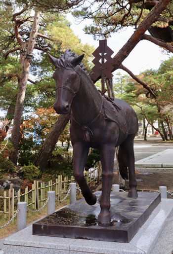 岩沼市指定有形文化財(令和7年(2025)3月6日)「伊達政宗騎馬石膏像」をはじめとして、馬に関するものを収蔵しています。